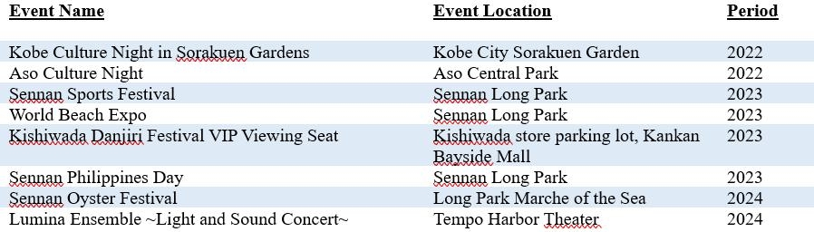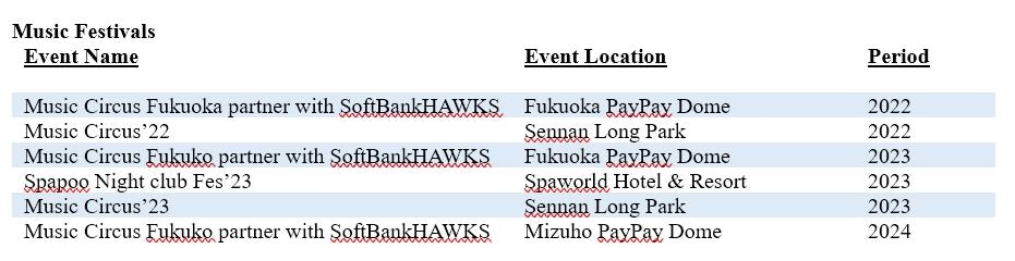 Uniquely Japanese Content: We partner with local businesses and organizations to create event experiences that showcase Japanese culture and we are working to develop events that integrate traditional Japanese elements, such as tea ceremonies, calligraphy, and martial arts, to appeal to domestic and international audiences.